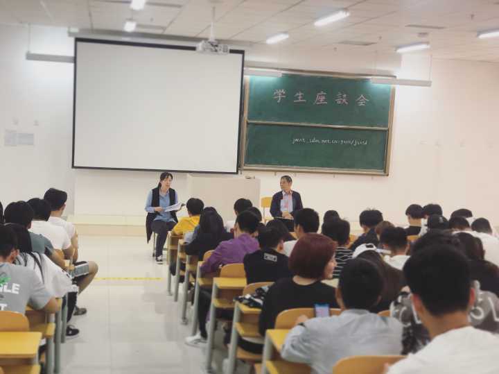 接下来学生代表们结合前的学习、生活提出自己的意见和建议。教务处针对同学们提出的部分问题进行了现场解答。教务处张庆会处长最后总结发言,他指出,学生座谈会每学期都要召开,是解决教学问题、促进班级发展的良好途径,是学生与学校沟通的良好平台;对于学生提出的问题,教务处会及时进行梳理和研究,并及时解决问题。最后,为建设更好的教风、学风、校风等,希望同学们继续保持信息畅通,随时向教务处及所在院系部反应存在的问题。