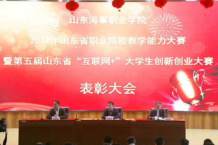 为表彰先进,树立典型,山东海事职业学院在11月1日举行了2019年山东省职业院校教学能力大赛暨第五届山东省“互联网+”大学生创新创业大赛表彰大会,会议由李振鹏副院长主持、宋志刚副院长、张庆会副院长以及各教学单位负责人、教研部主任、2019年各参赛团队成员以及17、18级在校班级的班长和学习委员参加。